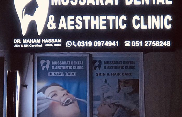 Mussarat Dental & Aesthetic Clinic Skin Care Clinic 0311 9100077 / 051-2758248 1st Floor, Diamond Mall & Residency, Shop# FC-14, Islamabad, Pakistan Save Submit Review Share Share This Post facebook twitter linkedin google pinterest Description Maps Photos Hours Reviews DescriptionDentist and Aesthetic Physician Maps Map Street View Get Directions Photos Today Closed10:00 am - 9:00 pmMonday10:00 am - 9:00 pmTuesday10:00 am - 9:00 pmWednesday10:00 am - 9:00 pmThursday10:00 am - 9:00 pmFriday3:00 pm - 5:00 pmSaturday10:00 am - 9:00 pmSunday10:00 am - 9:00 pm Add Review & RateReply comment Cancel replyNameEmail Save my name, email, and website in this browser for the next time I comment. Be the first to review “Mussarat Dental & Aesthetic Clinic” Cancel replyNameEmail Save my name, email, and website in this browser for the next time I comment.Review Drop images to upload or Gallery Images Close Business Info Get Directions 1st Floor, Diamond Mall & Residency, Shop# FC-14, Islamabad, Pakistan 0311 9100077 / 051-2758248Follow Us Contact Business Send Message Today Closed10:00 am - 9:00 pmMonday10:00 am - 9:00 pmTuesday10:00 am - 9:00 pmWednesday10:00 am - 9:00 pmThursday10:00 am - 9:00 pmFriday3:00 pm - 5:00 pmSaturday10:00 am - 9:00 pmSunday10:00 am - 9:00 pm Nearby listings Find more Skin Care Clinic near Mussarat Dental & Aesthetic Clinic Browse Nearby Bakery Bank Beauty Salon Businesses Car repair and maintenance service Coffee Shop Consultant Corporate Office Dental Clinic Electronics Store Event Venue Farm Fast Food Restaurant Furniture Store Garden Gas Station General Contractor Government Office Gym Hardware Store Home Improvement Store Homestay Hospital Hostel Hotel Housing Complex Lodging Market Mosque Nightlife Park Pharmacy Real Estate Agency Real Estate, Shopping Residential Restaurant School Shopping Mall Shopping, Residential Sports Sports Club Sports Complex Store Telecommunications Service Provider Travel Agency University Wedding Venue Wholesaler Show all Statistic 188 Views August 7, 2025 Claim your free business page to have your changes published immediately. Claim this business Claim This Business Send private message Login to send a private message